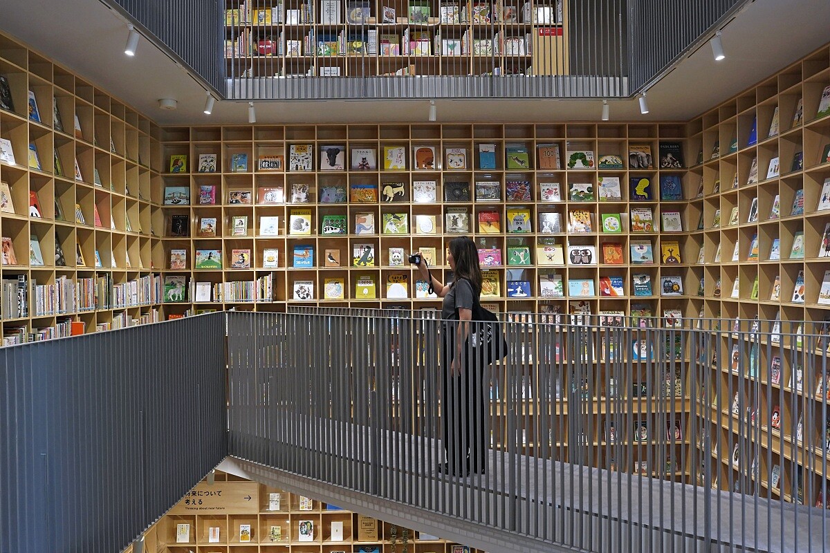 由日本建築巨匠安藤忠雄所設計的「童書森林 中之島」於2020年7月開幕,位於大阪中之島公園區。建築沿著堂島川而建造,因此呈現簡約流暢的弓形外觀,招牌的灰色清水模材質與河岸風景呼應,展望台上則有醒目的青蘋果雕塑《永恆的青春》。 內部空間共有三層樓,藏書佈滿每個角落層架,且整齊有秩序的向四面八方不斷延伸,書架更體貼兒童體型量身打造,貼近使用者需求,再放進經典的 Artek 兒童座椅,呼應了木質調的陳設。往更裡頭走去則有「Rhizomatiks Design」團隊打造的獨立空間,投影了童書作品,呼應了這個充滿想像和探索的閱讀天地。須在參觀日兩週前預約,共有四個場次,每一次僅開放100人入場。