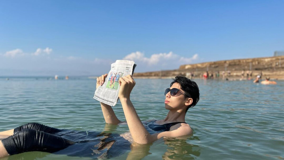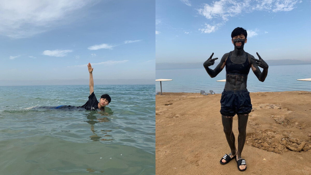 死海位於以色列、約旦和巴勒斯坦交界,23%至30%的高含鹽量使魚類無法生存,因此得名。林郁婷曾兩次到這裡遊玩,感受不用泳圈就可以躺在海中央特別經驗,也順便享受了一套死海泥spa套餐。粉絲如果有結實的腹肌,就可以拍出同款「黑巧克力」,沒有的話可以挑戰難度較低的海中看報紙,戴上墨鏡愜意的樣子認真又搞笑。