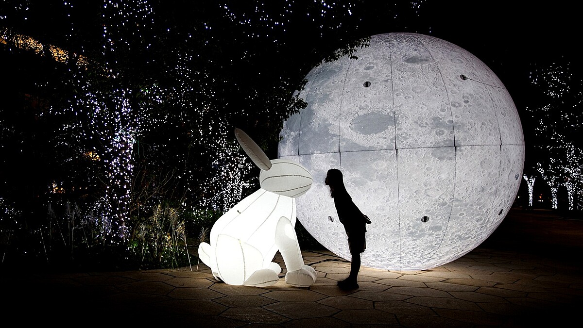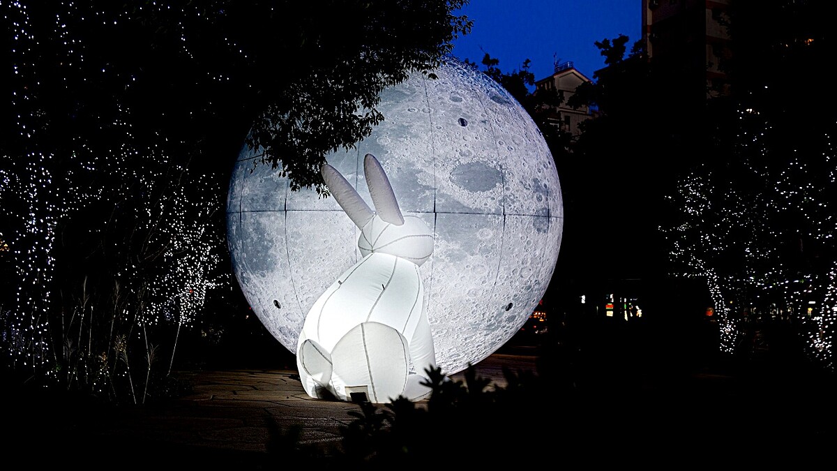 鄰近捷運劍南路站的台北萬豪酒店,2024年中秋節邀請大家上街感受團聚溫馨之情,特別在酒店旁人行道上設置「萬兔MOON遊」藝術裝置,以巨大的4公尺尺寸重現月球的奇景,內部許多LED燈泡發光,在入夜後即可欣賞其細緻的陰影輪廓,讓一家大小都能就近感受迷人風采。