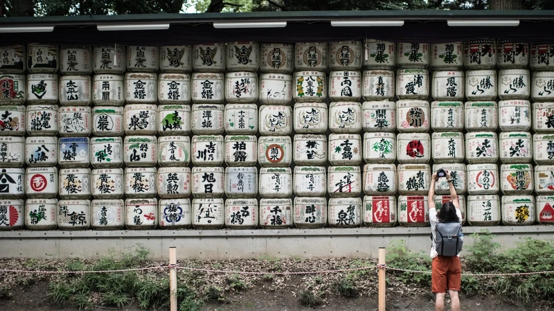 參觀南參道這條路線,會先看見放置兩旁、數量眾多的必拍景點「酒樽牆」,一邊是清酒桶一邊是葡萄酒桶。酒是供奉神明的供品,因此在日本神社都能看到清酒樽,而明治神社的清酒樽來自全國各地,共有201樽。葡萄酒則是因為明治天皇在位時引進西洋文化,也非常熱愛葡萄酒,才有獨特的「和洋折衷」景象。