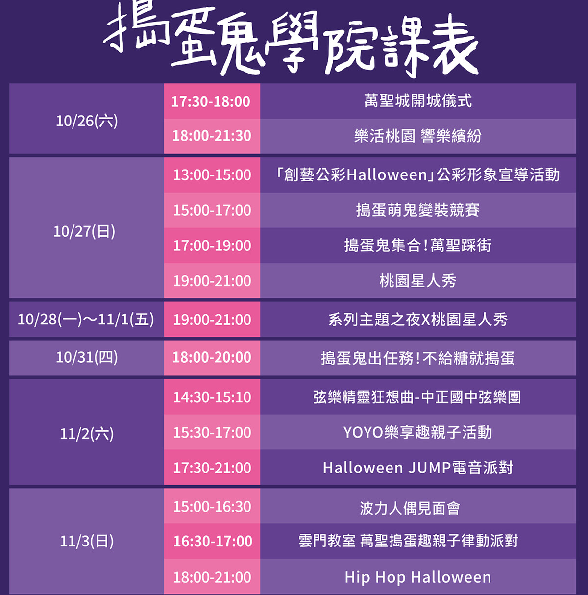 10/27-11/01 桃園星人秀及系列主題之夜
