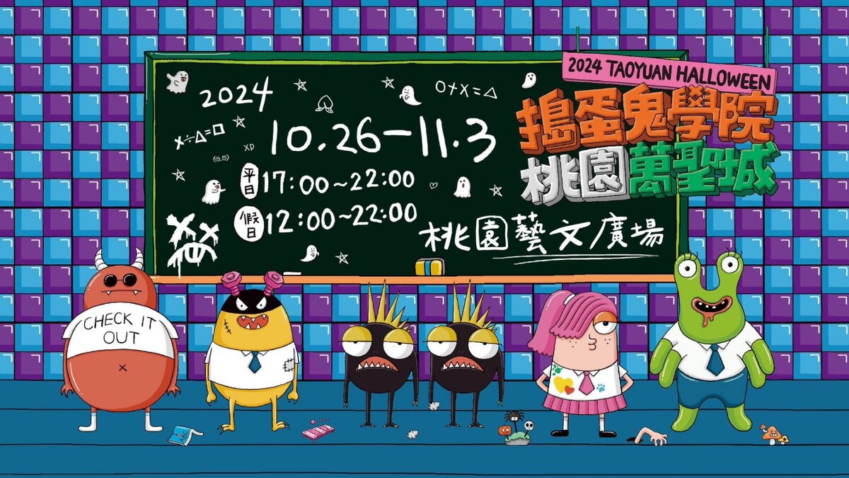邁入第5屆的「2024桃園萬聖城」,以「搗蛋鬼學院」為主題,在桃園藝文特區特別設置四大院區,要喚起大家調皮搗蛋的隱藏本性,並設計一個個能發創意和淘氣精神的活動,為2024年留下別開生面的萬聖節體驗。這次活動更設計出四位IP角色:卡勒佛、史蓋瑞、萊特、英格麗敘,並會齊聚多達百攤萬聖特色市集,營造滿分的詭譎氣氛。
