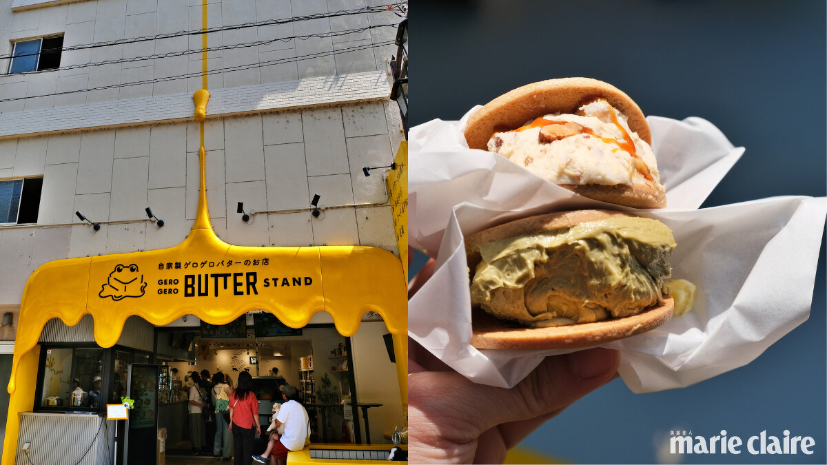 沿著下呂大橋前往溫泉街,則會發現眾多隱藏於巷弄間的溫泉旅館和商店的街道上有延伸自與青蛙叫聲諧音相同的下呂(Gero),而有各種「青蛙」元素隨處可見,從青蛙人孔蓋到各式青蛙主題紀念品與饅頭小食點心,在「GERO GERO Butter Stand」即以小青蛙作為圖樣象徵設計,從門口大招牌的鮮黃奶油起司傾瀉而下,可看到可愛的大牛乳泡湯造景,能在此吃到青娃泡湯造型的奶油烤飯糰,入內還有多種可口禮盒可以入手。