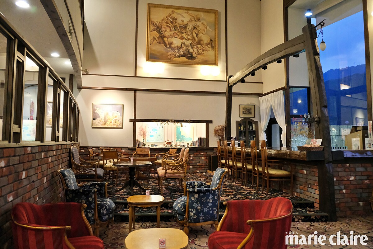 位於下呂溫泉街區的紗々羅旅館(Sasara)的老字號日式溫泉旅館,在一進門的兩個大廳就能欣賞各種藝術品畫作。而在瀑布和河流流經的中庭咖啡庭,到了夜晚還有氣氛極佳的射擊酒吧!