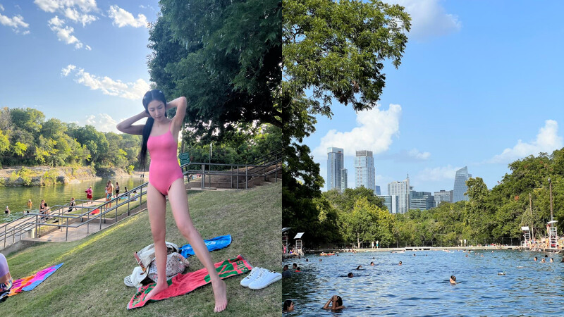 Barton Springs Pool 也位於奧斯汀市,是坐落於Zilker公園中的天然溫泉池,以清澈天然泉水和迷人自然景觀而著名。Barton Springs Pool水溫全年穩定在攝氏20度左右,成為一年四季都適合游泳的天然場所,夏天更是大家消暑的好去處。楊謹華喜歡到二度造訪,她說泉水冰涼到就像泡在冰桶一樣,喜歡玩水的粉絲絕對不能錯過。