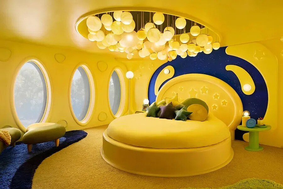 最新角色阿焦(Anxiety)的房間也充滿趣味,專為舒緩旅客的焦慮而設計。房間內不僅寢具和天花板都是毛茸茸的,牆上還有許多鼓勵的語句,像是「你可以做到!」、「放輕鬆」、「你很棒」,讓人倍感安心和溫暖,是讓心情從焦慮轉回平靜的避風港。