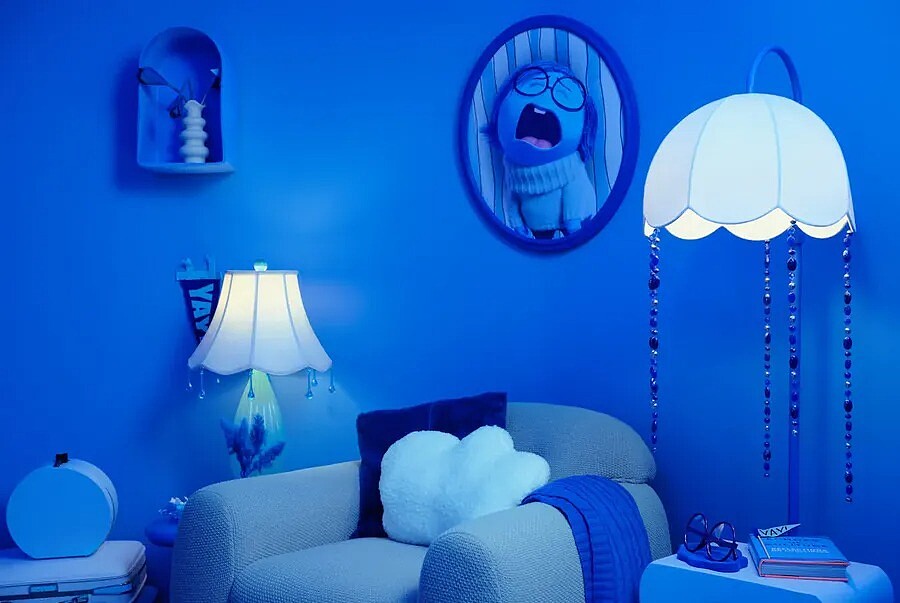 《腦筋急轉彎 2》主題民宿以萊莉的「大腦總部」為主軸,一進門除了有經典的大腦控制台,也還原了劇中 5 種情緒,包括樂樂(Joy)、憂憂(Sadness)、怒怒(Anger)、驚驚(Fear)、阿焦(Anxiety)的主題風格房間,每個房間的布置、陳列都色彩繽紛,一眼就讓人認出是哪個角色的特色房間。