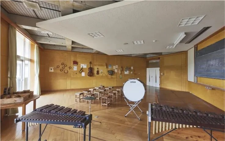 民宿內設有圖書館、音樂室、廣場和庭院等設施,巧妙地保存了一大部分學校過去的風貌,賦予廢棄小學新生!