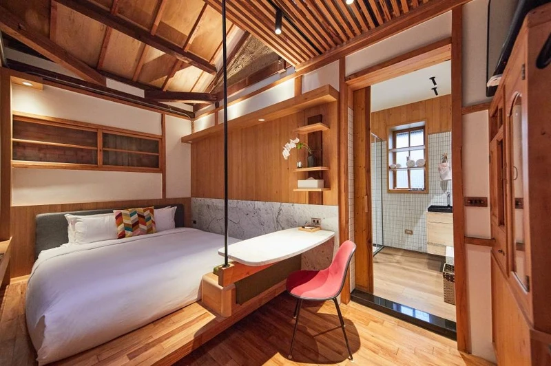 阿里山山腳下的「木都」嘉義市,因早年扮演木材集散地與加工地的重要角色,至今仍有超過62,000棟左右的老木屋散落在城市各個角落。而為了讓這些閒置空間有所用,近幾年,嘉義市政府開始推動「舊屋力」計畫補助,以及「具人文或歷史風貌區域」範圍的合法民宿登記。對此「有春枟宅」是投入民宿經營的業者中,最先也是最具木都特色的嘉義老屋民宿之一。民宿隱藏在中山路旁的小巷弄中,由檜木老屋改造而成。古樸質感的設計讓人彷彿走入另一個時空,渾然忘卻此地是鄰近嘉義噴水圓環、文化路夜市鬧區,頗有歲月靜好之感。