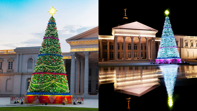 隨著「2024聖誕週末」於12/14(六)起連續兩個週末登場,2024幸福聖誕樹率先為活動暖身登場!主打西洋傳統節慶氛圍,綠色樹體搭配金、紅、藍三色彩球營造出繽紛層次感;底座則以紅色、金色幾何圖形交錯,呈現出華麗貴氣姿態。日夜倒影及配合博物館的西洋建築,完全是聖誕節必拍熱點!。幸福聖誕樹自即日起展出至2025/1/7,每日17:30至22:00點燈,並於「聖誕週末」夜晚舉行聖誕燈光秀。