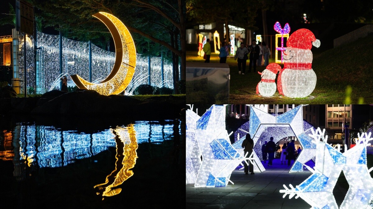 除了主樹,更有結合公園光環境的九大燈區超好拍!包含長達近百公尺的「流光拱廊」、入口燈飾「聖誕禮頌」、「星海隧道」、兩側草坡區「Sweet Memory」、「霓光星球」、「晶喜雪花」,湖面旁「月光祝福」、「星願寄語」、點亮中山路的燈飾「城市中軸」,每晚6~12點浪漫點燈。還能在中山路週邊道路、中央公園內發現麋鹿、大型禮物盒、聖誕老公公的蹤跡,不妨跟親朋好友一同去挖掘驚喜!