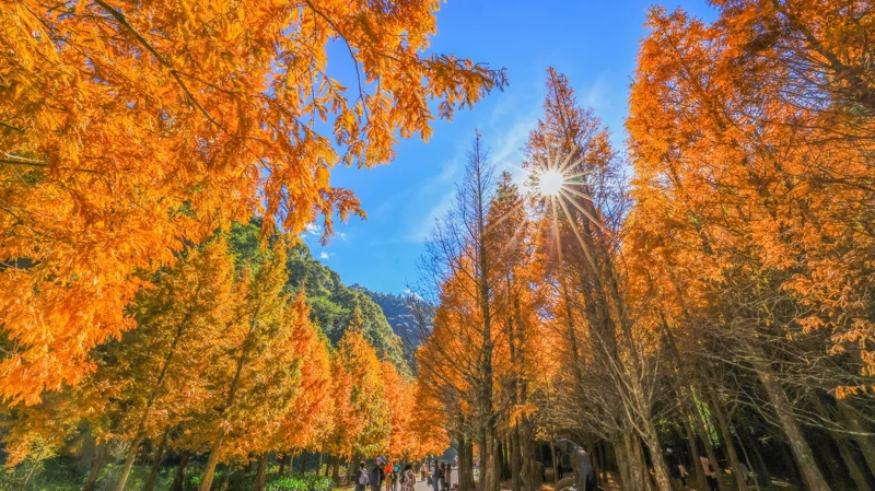 近期周遭是否有許多朋友飛到日本賞銀杏?整片黃澄澄色調美景相當舒心,而在台灣也有同樣夢幻的金黃色期間限定美景正上演著!位於南投的杉林溪森林生態園區種植800棵的水杉,現在已進入年末的最佳觀賞期,橘黃色調搭襯著清澈藍天,直叫人心花怒放!