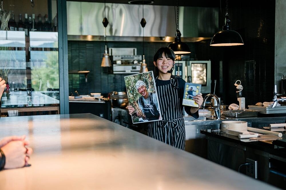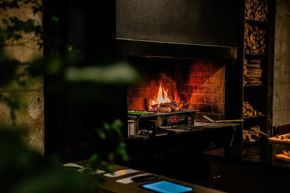 入住「松本本箱」,料理自然也是無法錯過的精彩展演,位於1樓的餐廳不時飄散柴火的陣陣燻香,餐廳名「三六七」代表一年365天,再加上2為十帖中「歷史」與「文化」理念定名,而 365+2=367,也正好是流經長野縣的千曲川長度,這座富足的流域供應著新鮮健康的美味食材,透過主廚手藝,正被直火烹烤成為今晚的美味柴燒料理,也再次回應了本箱系列是如何融入場景與料理設計,編寫地方的觀光、物產、人文與歷史,讓人們獲得深刻感受。
