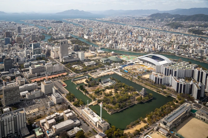 位於市中心的廣島城,由豐臣秀吉的五大臣之一「毛利輝元」主導建造,是日本百名城之一,也被列為三大平型城堡之一。現在的天 守閣內部改建為歷史博物館,展示日本武家文化與歷史。登上天守閣的展望室,能俯瞰和平紀念公園和原爆圓頂館,天氣晴朗時,甚至可以遠眺宮島。