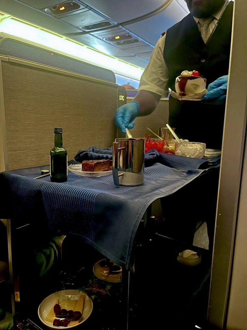 飛機餐一直被吐槽味同嚼蠟?北極星商務艙的餐飲服務可能會讓你對飛行餐刮目相看。主菜選擇非常多元,比如香煎牛排、鴨胸或新鮮魚排,每道菜的呈現都像來自五星級餐廳。而餐後的重頭戲「冰淇淋聖代車」,讓甜點控徹底融化。隨季節更換的菜單也讓每次搭乘都有新鮮感,讓你不自覺地期待下一次的飛行。