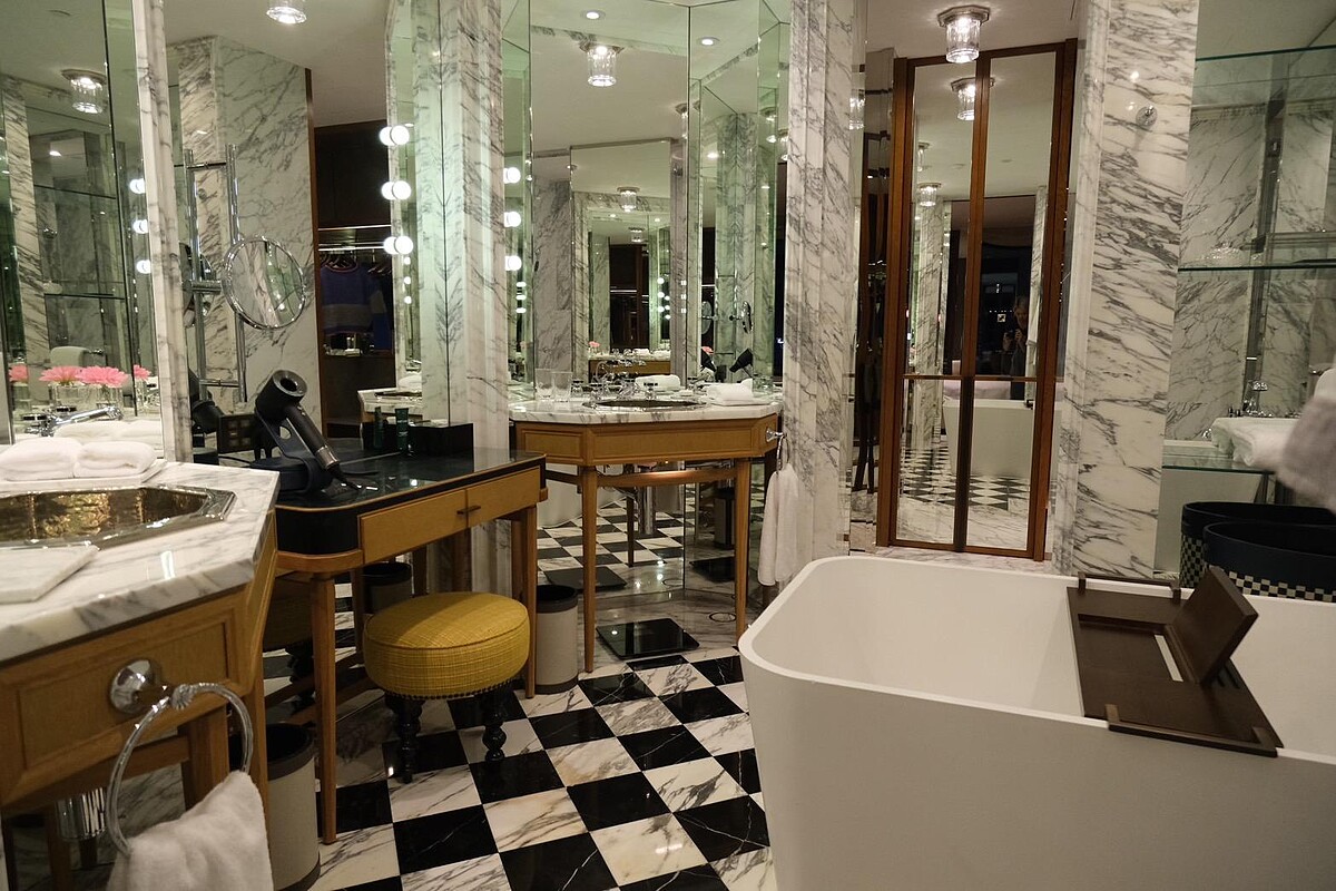套房的設計細節也很講究,從精選的當代藝術品到大理石圓形浴缸,每一處都展現著不凡品味。尤其是那帶有瀑布功能的雨林式淋浴間和高樓底設計的主浴室,真的是一種生活品味的極致表現。