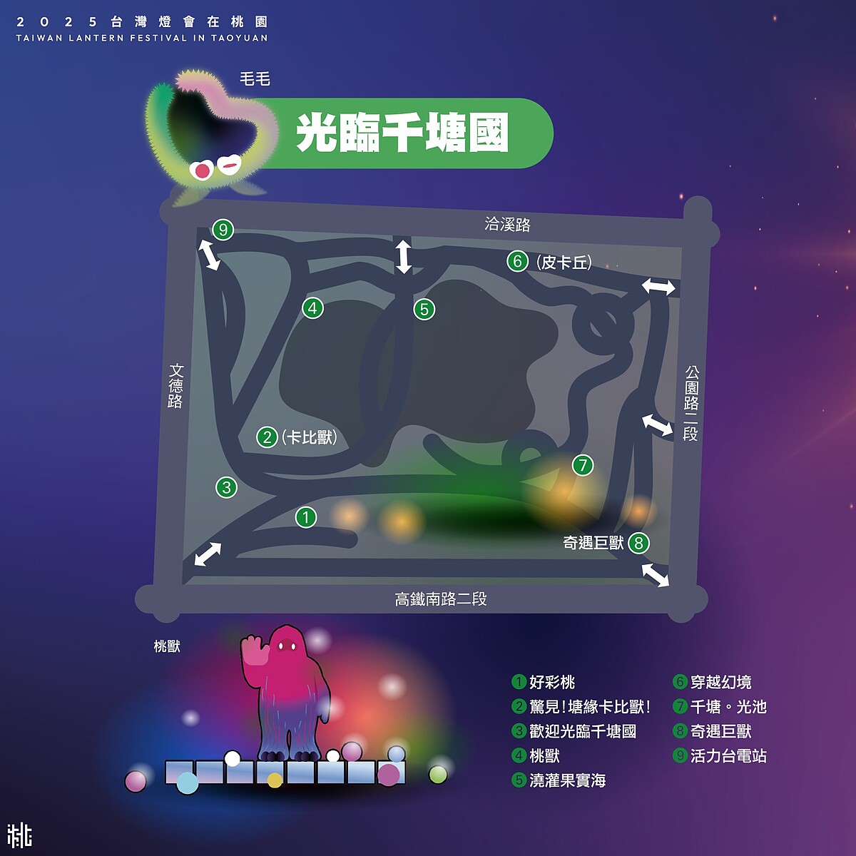2025桃園燈會「A19光的遊戲場」五大燈區、10公尺卡比獸降落