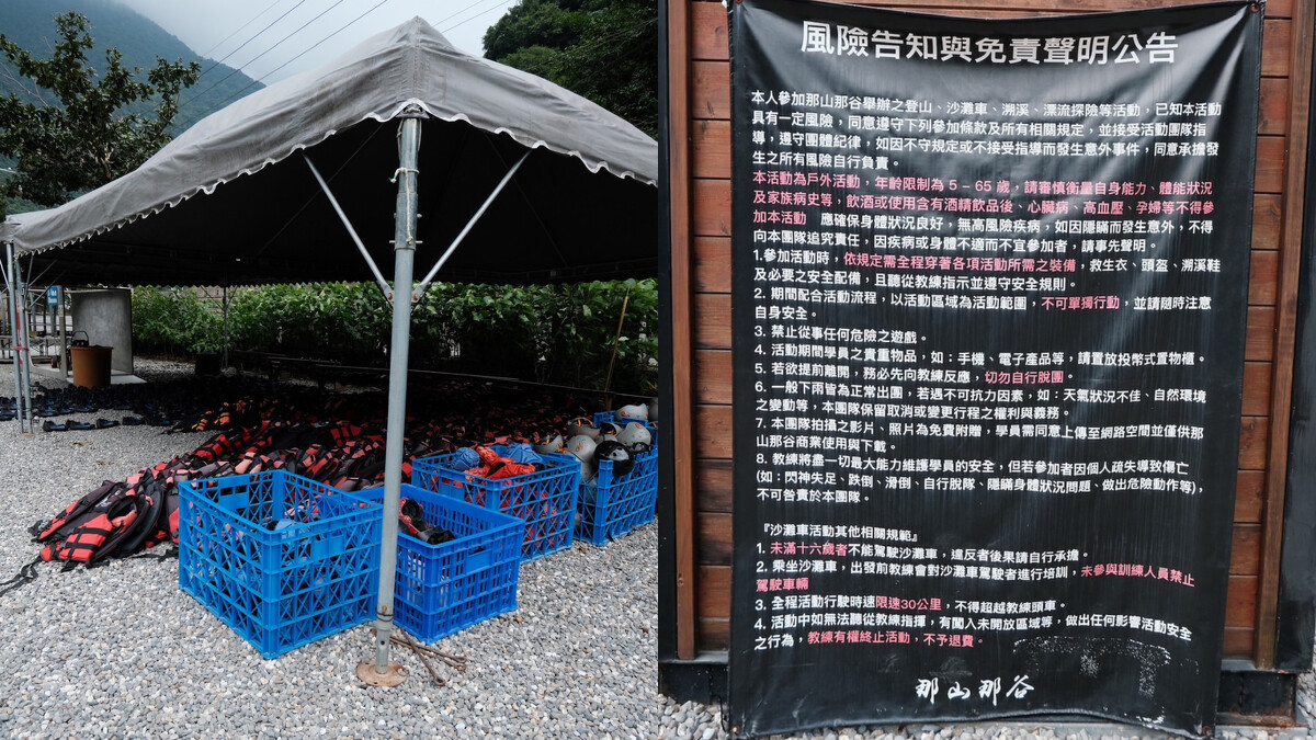 主辦單位提供完整的安全裝備,包括救生衣、防寒衣(秋冬限定)、溯溪鞋、漂流圈、頭盔等,並有經驗豐富的教練全程陪同,確保遊客的安全。