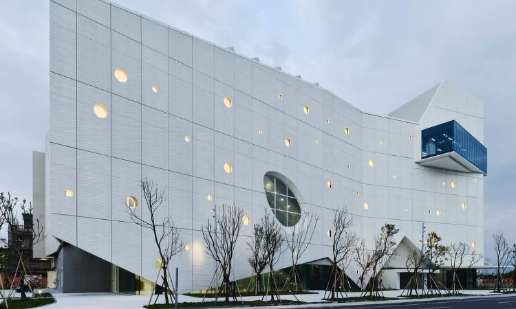 書店進駐的地點位在「屏東縣王船文化館」,是全國首座以無形文化資產「東港迎王平安祭典」為主題的展示館。從外觀來看,建築構造是以王船的船身為設計靈感,玻璃纖維水泥板模擬海浪、正中間的開口模擬王船船身的龍目,而小洞則是象徵著水花。不論是館內還是館外都融合了東港鎮獨有的特色文化,期望帶給讀者充滿在地風情的藝術之旅。