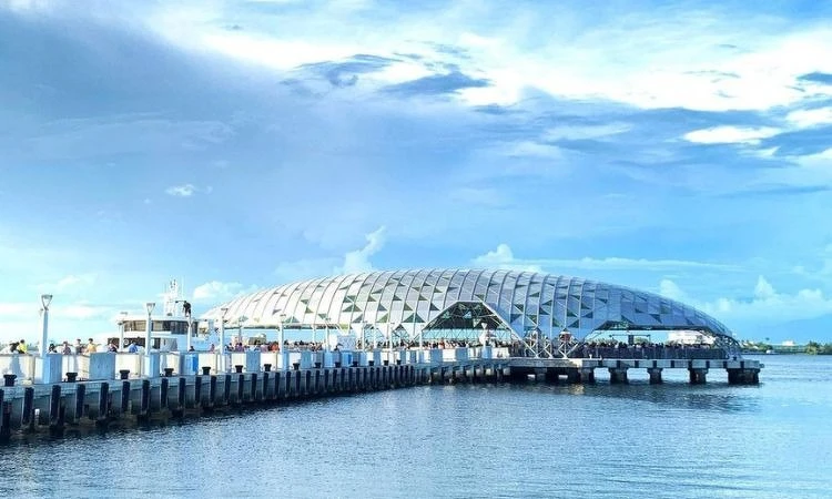 東津海上巨蛋的外觀如一隻潛伏在海面上的巨型鯨魚,閃閃發亮的外觀於白日和夜間會產生不同的風情,其除了作為濱灣候船中心,也是適合觀看夕陽的觀景平台。欣賞海面風光的同時,如果碰巧遇上施放煙火的時節,便可以感受映照在海面上的七彩絢爛燈光,感受絕美夜景。