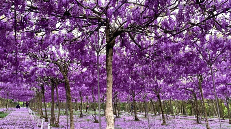 一號屯山園區占地1500坪、種植400株日本紫藤花;二號水源園區占地8000坪、種植1100株日本紫藤花,在春天盛放的浪漫畫面,即便短暫十餘天,夢幻色調與舒服香氣,都在旅客心中刮起仙氣風暴。