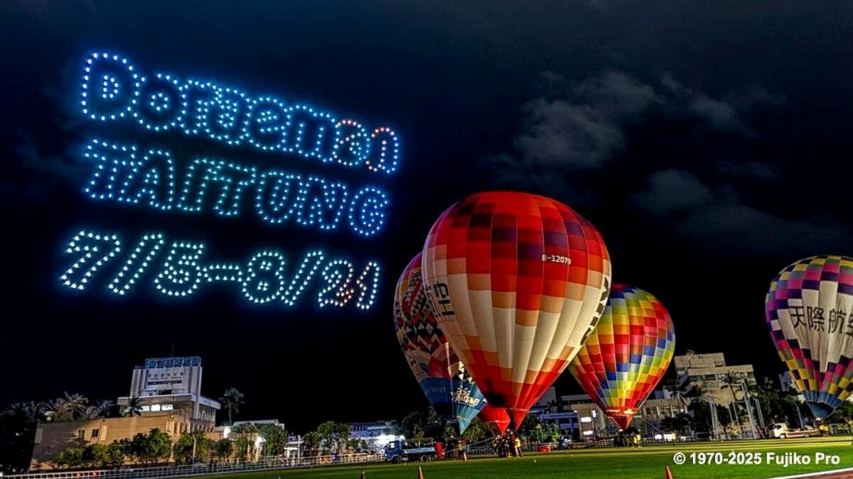 4月初,「2025臺灣國際熱氣球嘉年華」舉辦記者會,搶先曝光氣球光雕秀,並由無人機展演出哆啦A夢、招牌道具「竹蜻蜓」圖案,更預告還會有大雄、靜香、胖虎、小夫等大家熟悉的主角群加入,搭配著耳熟能詳的音樂旋律,勾起滿滿的童年回憶!