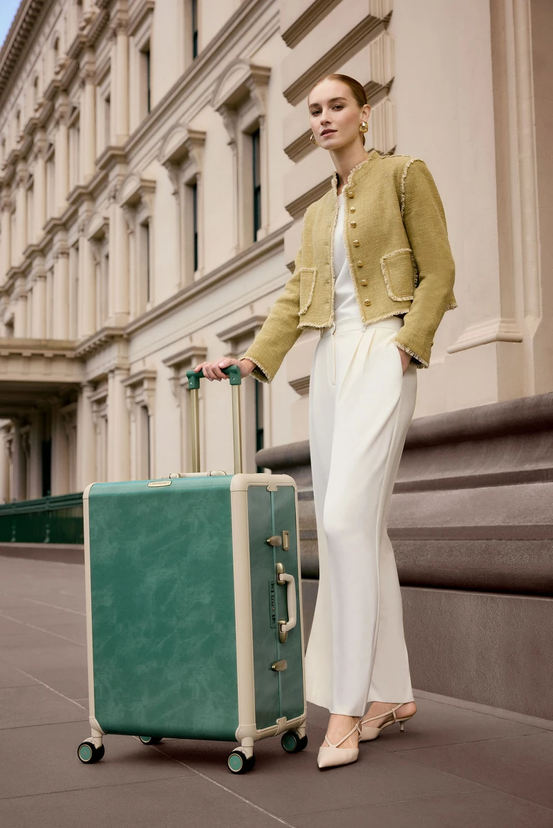 這款「New Streamlite」系列行李箱承襲Streamlite的經典,並融合摩登設計與審美,呈現出更加高級優雅的外觀,分別有琉璃蛺蝶藍以及百慕達綠兩色,內襯靈感取自經典不衰的英式佩斯利花紋(English Paisley pattern),以柔滑緞面布料打造,呈現極致奢華觸感。