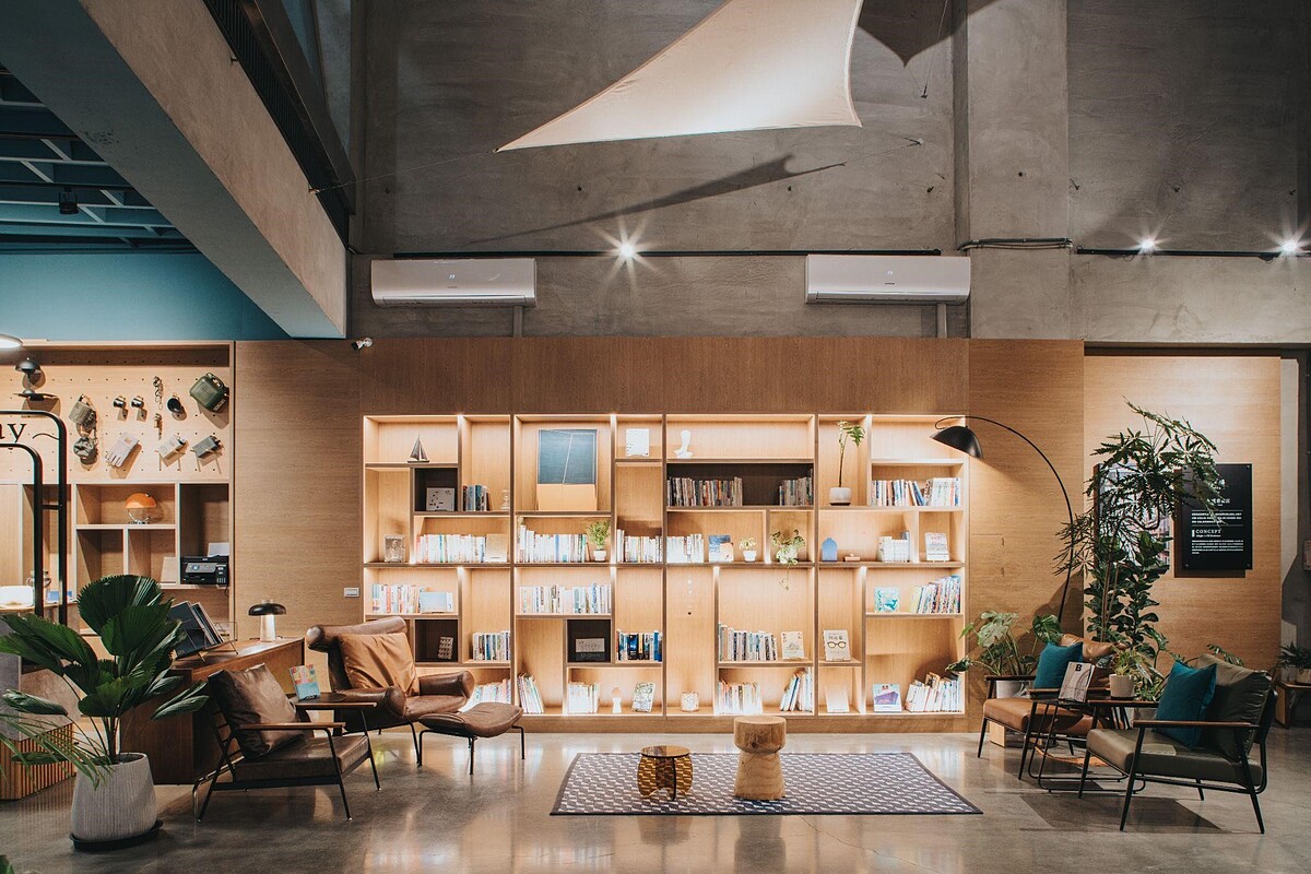 若是想換個環境走走,旅宿一樓的黑膠區與書牆是另一處亮點。黑膠唱片的轉動,像是將生活切換至慢動作;書架上來自獨立書店「或者書店」的選書,主題涵蓋海洋、地方文學、旅行、建築與療癒,讓每次閱讀都像走入不同風景。你可以把書帶回房內,或坐在大廳靜靜閱讀,在文字與旋律之間停留。