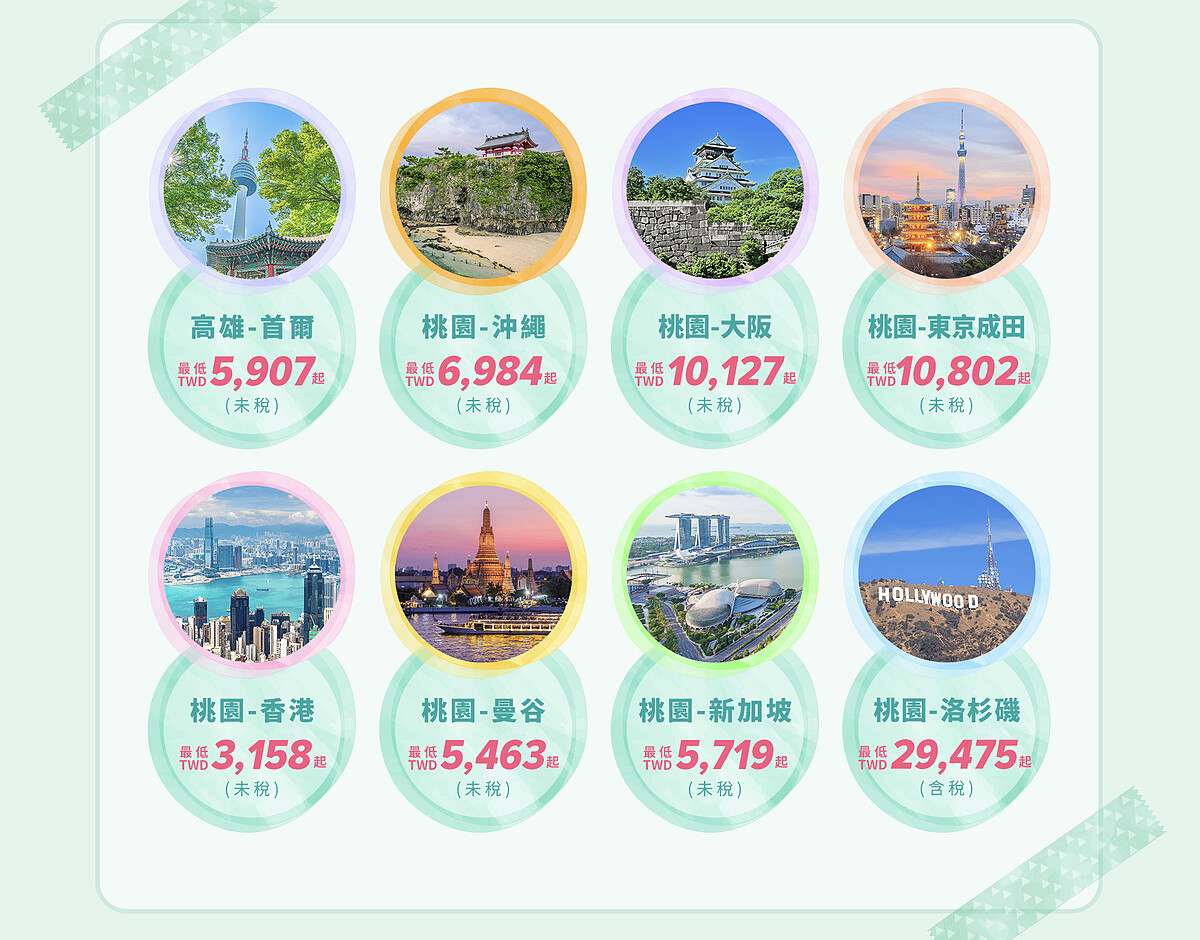 看準強勁的國際旅遊熱潮,「賞花GO!2025長榮航空春季限時優惠」 即日起跑,從亞洲或美洲都有優惠價格,最低價航線為桃園-香港來回只要3158元起(未稅價)、桃園-曼谷來回5463元起(未稅價)、桃園-新加坡來回5719元起(未稅價)。台灣旅客最愛的日本航線,桃園-沖繩來回6984元起(未稅價)、桃園-大阪來回10127元起(未稅價)、桃園-東京成田來回10802元起(未稅價)。長程線的桃園-洛杉磯來回29475元起(含稅價)。