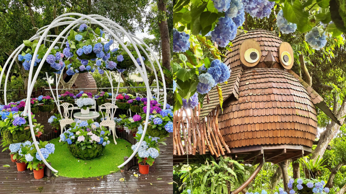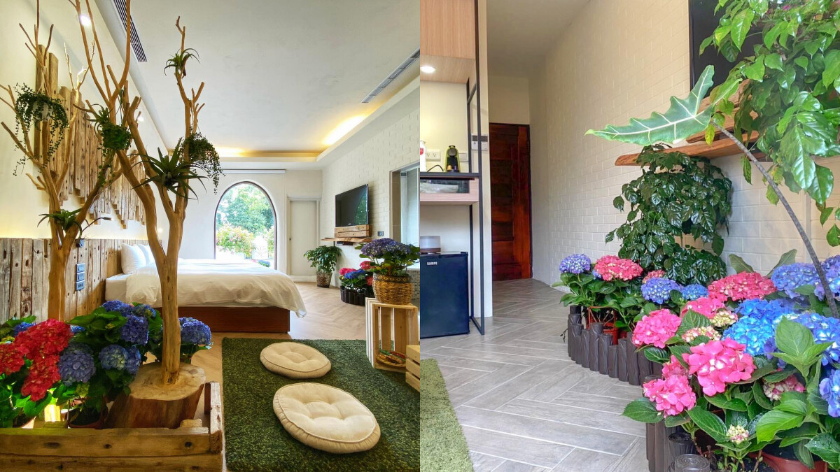 園區內的精油城堡民宿也在此時推出「繡球花主題房」,擺滿多顆大朵繡球花佈置,一張開眼就能感受濃厚的春意盎然。每天只限量4間,「香氛雙人房」假日5180元、平日3880元;「桐心雙人房」假日6180元、平日4880元;「王后四人房」假日8180元、平日6880元,有興趣的人得透過電話預約。