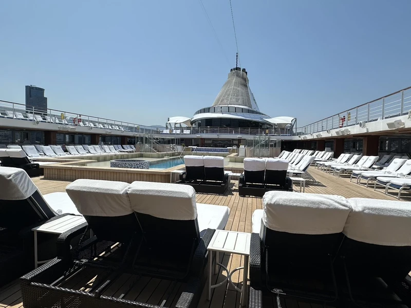 主餐室增設寶石吊燈與皮革扶手椅;Polo Grill牛排餐廳換上新地毯與時尚牆面布藝,精緻感大提升;戶外用餐區如Terrace Café咖啡室、Waves Grill燒烤區及Trattoria餐廳,讓旅客享受浪漫星空下的地中海美味。