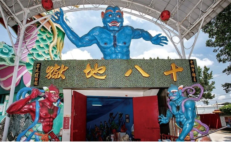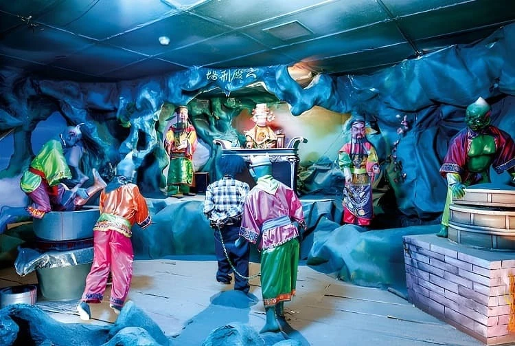 在麻豆代天府的後苑,分別有著「天堂」和「地獄」的入口,天堂府住著許多美麗的神仙,騰雲駕霧、遨遊仙境;但在地獄府,景色便不是如此雲淡風輕了⋯⋯