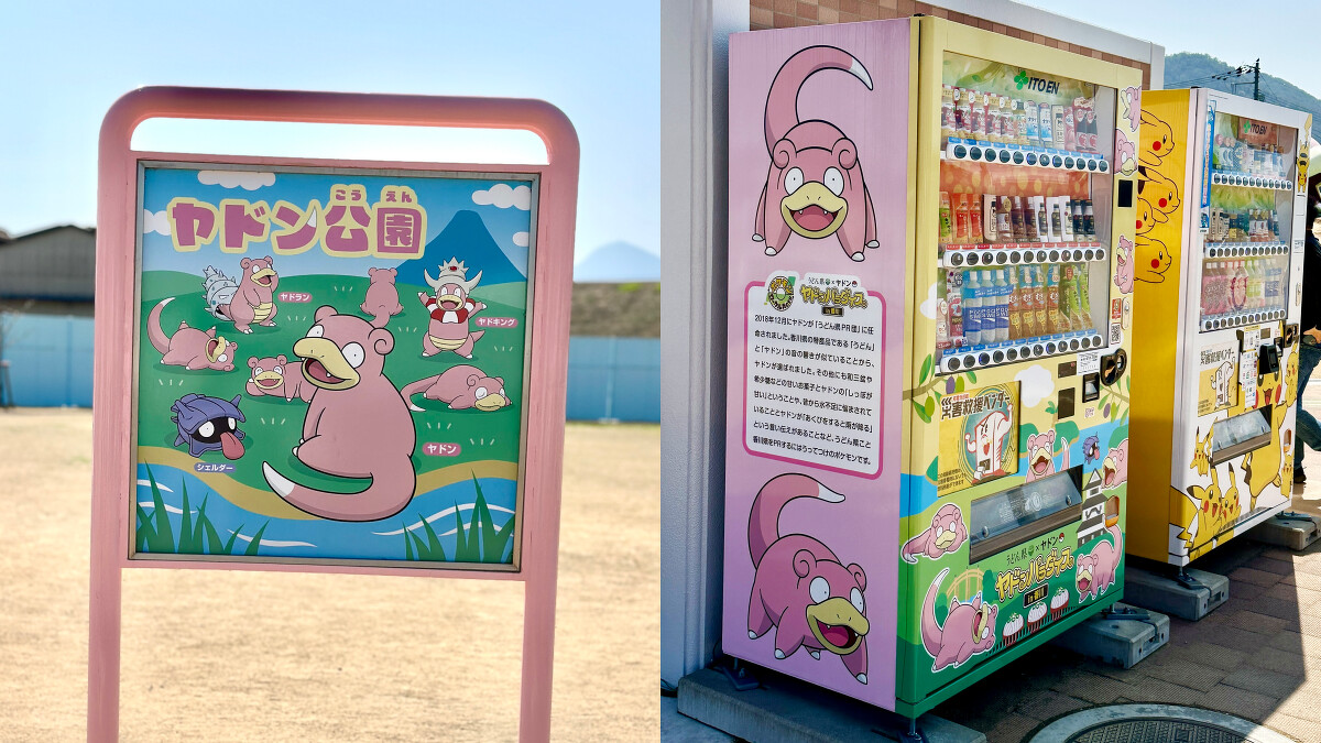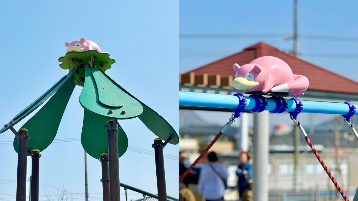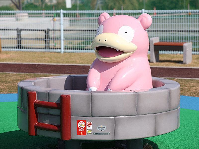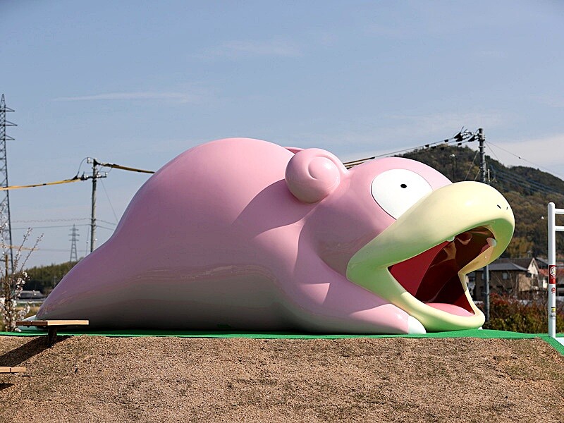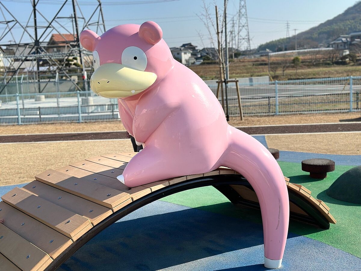 這位香川縣代表性寶可夢,甚至在2023年4月打造專屬主題景點:呆呆獸公園(ヤドン公園)!從入口處的粉紅色直立告示牌,便畫上多隻呆呆獸、大舌貝、呆殼獸、呆呆王等寶可夢圖案,是絕對不能錯過的合照第一站!整座公園最大設施是6公尺高的「呆呆獸溜滑梯」,能從尾巴處爬進去後,再由嘴巴處滑出,絕對會讓訓練師們眼冒愛心!