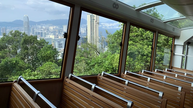 到了纜車站會有工作人員確認每團隨行人數後,才打開專屬通道讓旅客進入。上車後如有機會選擇座位,建議可挑選右側三人座區,該側坐擁絕佳視野,眺瞰香港壯觀的都市叢林喔!山頂纜車下山時是倒退而下,所以如果上山時沒有坐到觀景側,下山時也可以再次嘗試。