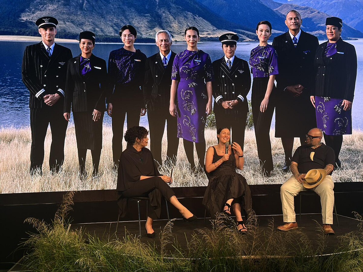 這套制服的誕生,其實可以追溯到3年前,那時全球正經歷疫情封鎖,航空業前景未明,紐西蘭航空卻選擇在此時啟動制服革新。而這樣的想法最終交織成一件件兼具設計美學與文化分量的制服,由國際時裝設計師Emilia Wickstead與毛利藝術家Te Rangitu Netana攜手合作,他們一位以高訂輪廓與倫敦時裝週聞名,一位則以毛利傳統刺青藝術將祖先故事寫進肌膚,一起將這些故事繡進制服裡。