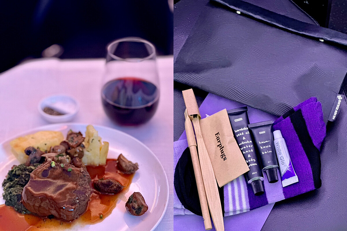 小編最喜歡的是來自紐西蘭當地的紅白酒以及各式酒類選項可以盡情享用,還有以毛利草本為靈感的Aotea護膚品,讓每位商務艙的旅客都可以好好的放鬆心情、釋放疲勞後,躺下來一夜好眠。這趟飛行不只是服務貼心、設備齊全,更是能讓人真心感覺自己不僅僅是乘客,而是被歡迎、被照顧的朋友,連飛行途中都能感受到來自這片土地的純粹與溫暖。