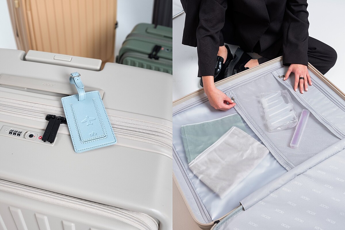 安全考量部分,「Acer哥本哈根前開式行李箱」也幫大家想到了,在行李箱設計上同步搭載配備了符合TSA規格的海關鎖、防爆拉鍊,讓大家可以好好地保護自身物品的安全;內部更是有著PVC防水收納層讓衣物可以在需要的時候乾溼分層,或是將乾淨與髒汙的衣物輕鬆阻隔,最後再加上AirTag收納袋,可降低行李遺失風險,使出遊女生在安心感與便利感都能夠拉到最高等級。