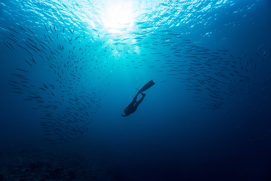 距離沖繩本島僅一小時航程的宮古島,擁有晶瑩剔透的蔚藍海水與絕美的白沙灘,被譽為「東亞的馬爾地夫」。這裡的海面能見度極高,潛入水中即可見到大面積的珊瑚礁群、悠遊其間的海龜與上百種熱帶魚群,是潛水與浮潛愛好者的天堂。尤其是青之洞窟,這個海底洞窟因為特殊的光線折射,形成了夢幻般的藍色光芒,無論是浮潛還是潛水,都能讓人陶醉在這片神秘的海底世界。