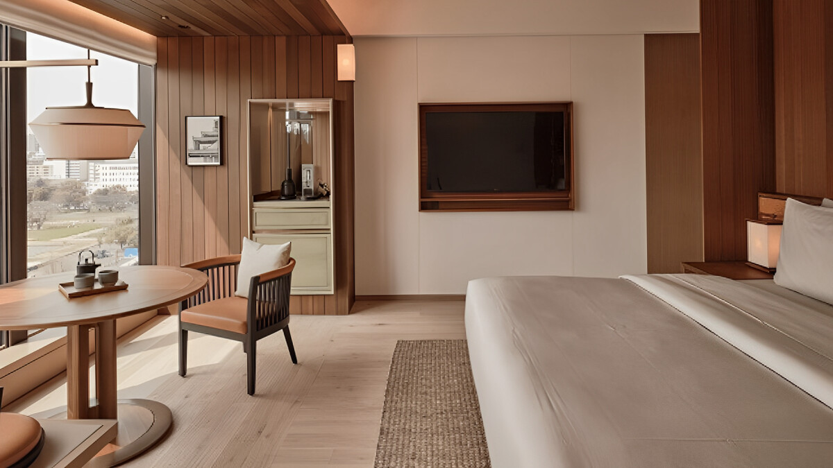 大阪柏典酒店坐落於大阪城與難波宮遺跡公園之間,由日本知名建築設計事務所 Jun Mitsui & Associates 與室內設計公司 Strickland 聯手打造。設計靈感源自日本文化的「季節感」(kisetsukan)理念,融入大阪城的建築元素——護城河水紋、銅瓦之光,在細節中連結歷史與當代。酒店內 221 間客房與套房,延續「季節感」設計,選用天然木質元素及落地窗,將大阪城公園或難波宮遺跡公園的風景盡收眼底。酒店傳承日式美學之餘亦不失當代舒適,為賓客呈獻能靜觀四季更迭的私密空間。
