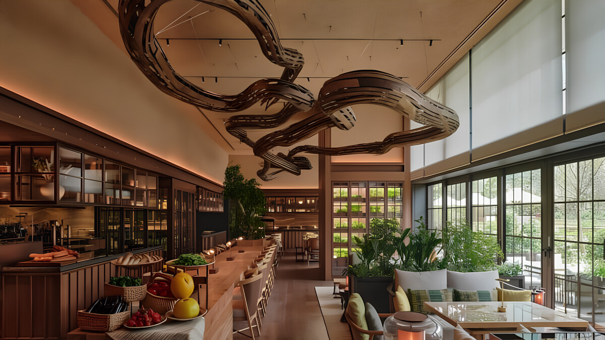 在標誌性餐廳 P72,賓客將循著日本七十二候細微的季節轉變,展開一場順應時令的味覺探索。餐廳內由一件長達 52 米、由大阪本地木工廠回收木材製成的主題藝術裝置「根」貫穿整個空間。P72 另設一座可食用植物花園,呈獻多重感官享受!餐廳推崇當地食材和可持續理念,呈現人與自然的緊密連結。
