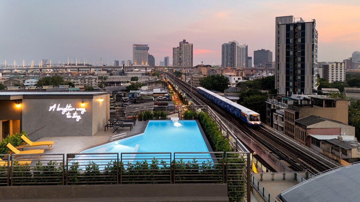 度假怎能少了在泳池拍美照?頂樓泳池完全能滿足你的需求!既能在旅遊期間持續鍛鍊身材,也可以在躺椅上欣賞曼谷城市天際線、絕美夕陽,還能不時看到BTS空鐵列車駛進駛出,無疑是絕佳的社群素材。
