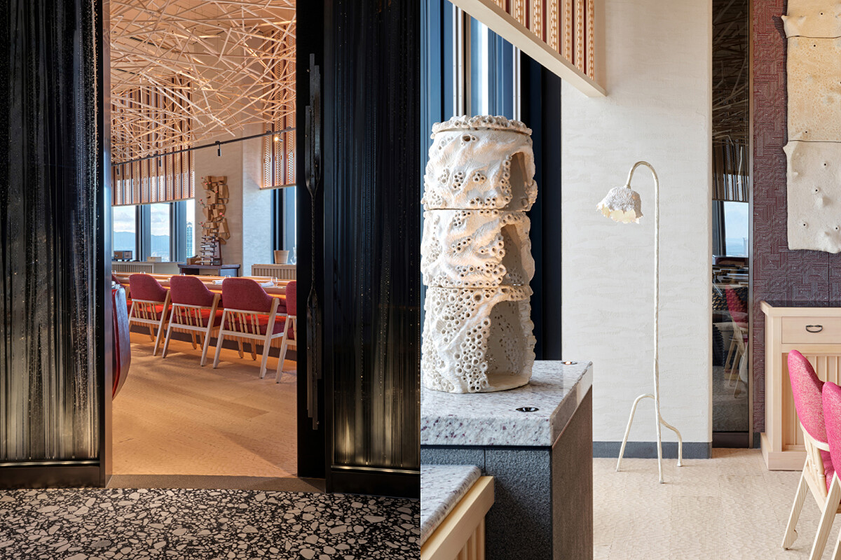 賓客可在此享受由兩位主廚精心設計的「御任料理」(omakase)套餐,從前菜「Emotion」開始,展開一場味覺與感官的旅程。菜單中的亮點包括安田主廚精湛的握壽司,每一貫都展現出對食材的深刻理解與細膩手藝;Alléno 主廚則以法式技法重新詮釋日本食材,如以朝鮮薊製成的豆腐搭配煙燻魚卵,展現創新的味覺層次,也成為一場東西方的餐桌對話。