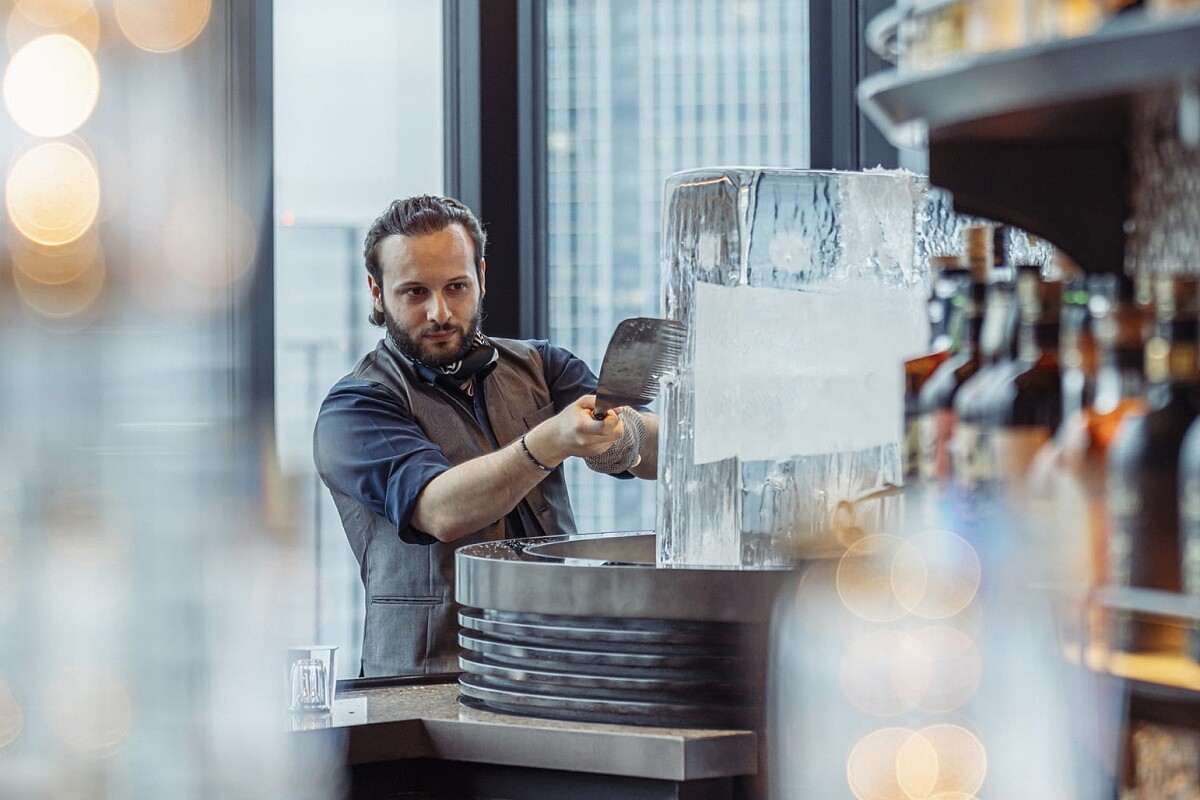 位於37樓的高空酒吧,以圓形吧台為中心,主打創意雞尾酒,如「Sakura Dreams」融合金酒與櫻花糖漿,氣氛時尚浪漫。
