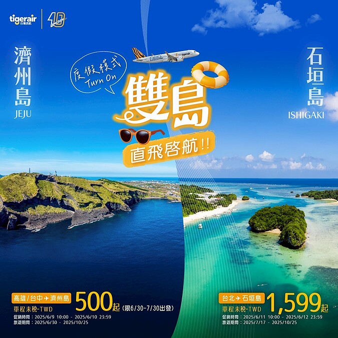 夏天正式到來,該是時候擁抱熱情的太陽與大海!為了讓旅客有更經濟實惠的出遊選擇,台灣虎航再次開設新航線:石垣島、濟州島,小資族也可以擁有難忘的2025年暑假回憶。