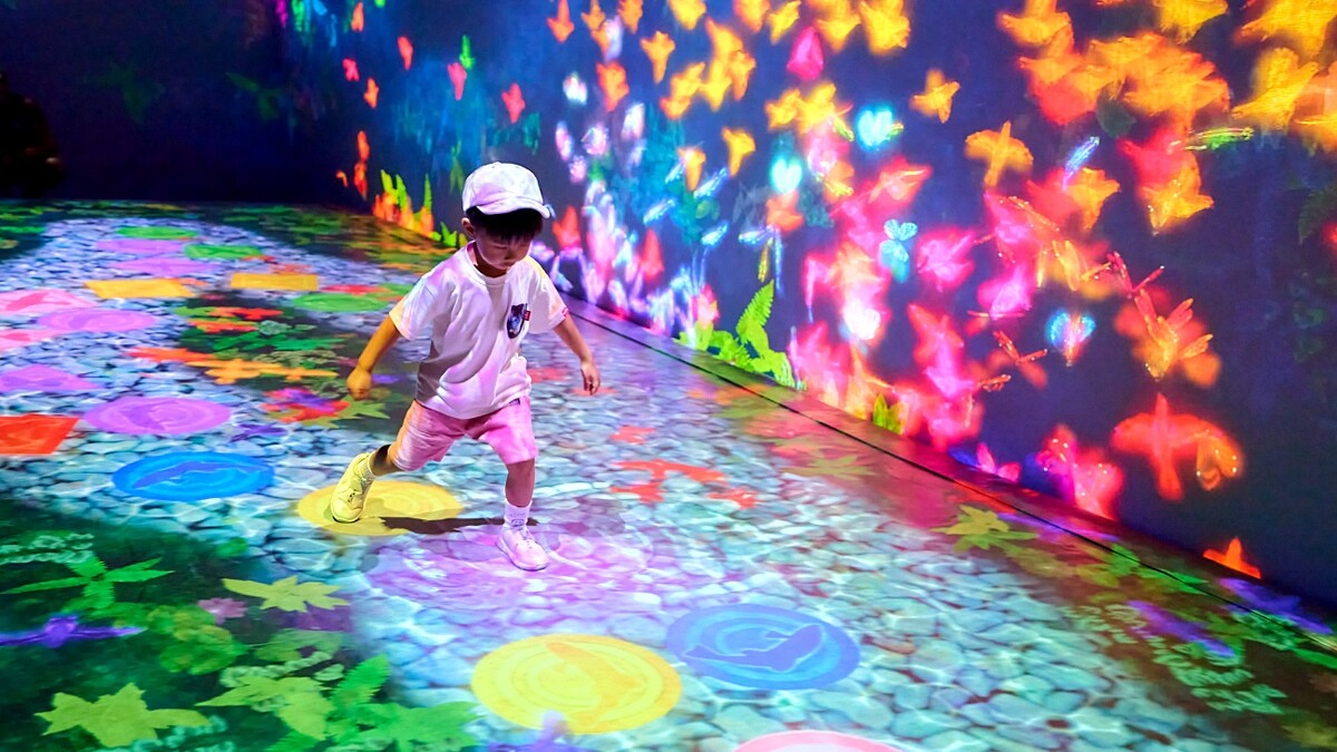 小朋友絕對玩瘋的《滑梯水果園》,滑梯變身成培育各種水果的園區,體驗者宛如是太陽,撞上球體時會看到光源朝四周飛去;碰撞到水珠時則能讓水果生長。其他適合小朋友玩樂的作品還有《小人兒所居住的音樂牆》、《小人兒所居住的桌子》、《水上彈跳的天才跳房子》,能與各種動物、昆蟲、大自然元素互動,記得多留點時間享受。