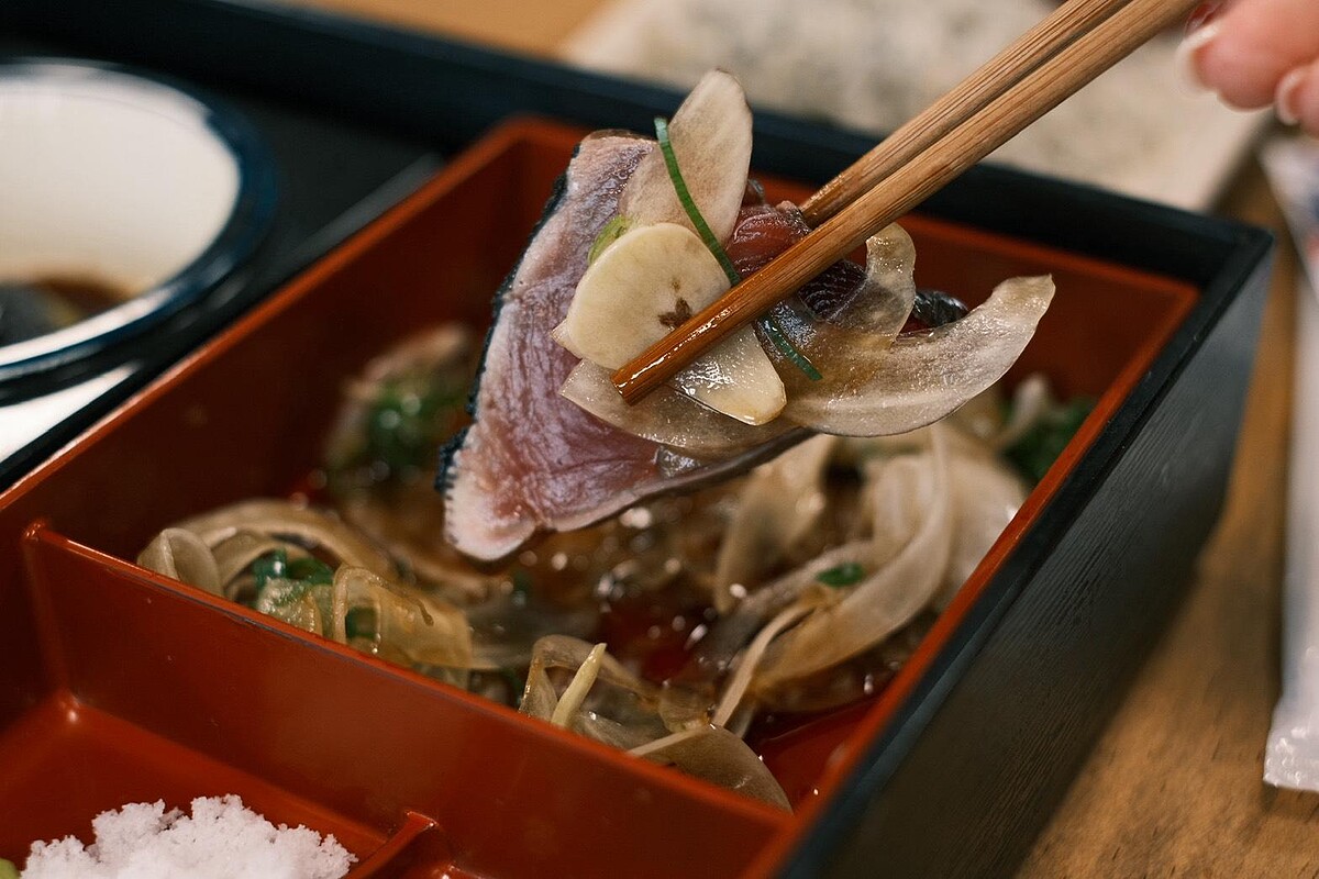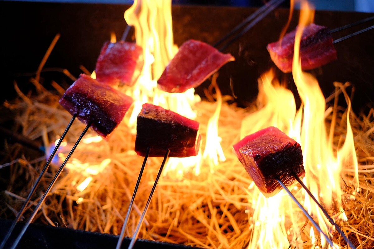 高知有「鰹魚王國」之稱,而其中最有趣的吃法就是用稻草炙燒的鰹魚半敲燒(たたき)。在這艘停泊於港邊的「鰹魚船」中,你不只能吃,還能自己動手烤。選用四萬十地區契作農家的稻草,點燃瞬間火焰竄升,將厚切鰹魚表面燒得微焦、香氣逼人,接著切片搭配蒜片、醬油、洋蔥絲一起入口,鹹香中帶點微燻火氣,這種鹹香中帶點微燻火氣的獨特口感,唯有親手炙烤才能體會箇中過癮。炙燒區最多可容納40人同時體驗,還能現場購買各式伴手禮與鰹魚製品,建議提早前往,晚到可是會賣完的。