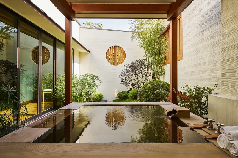 隱身北投山林之間,三二行館以東西方融合的療癒美學與建築語彙,打造遠離喧囂的靜謐天地。今年春夏推出四大專案,從北部最大露天湯區出發的伴响,泉專案」結合泡湯與茶席體驗;「伴响,身專案」以60分鐘芳療搭配下午茶深入釋放壓力;「溪山憩專案」則整合餐飲、湯泉與SPA打造半日沉靜時光;還有「客房泡湯專案」選用限量房型,讓人在專屬私湯中被自然擁抱,體會真正的慢生活哲學。