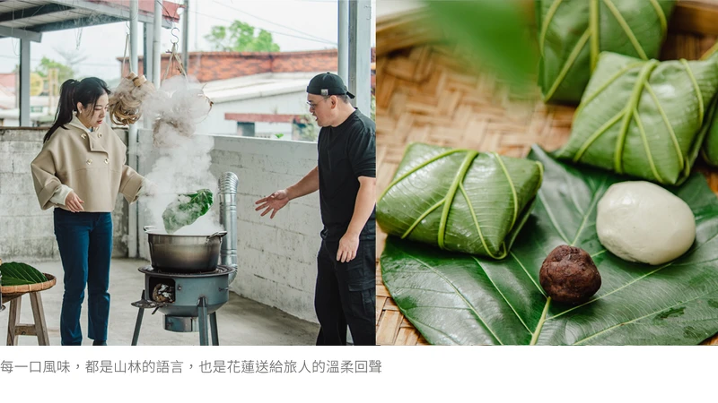 如果說海是一場感官的冒險,那麼山,則是一場深入與土地的對話。煙波將視角轉向車程十五分鐘的山林,攜手在地職人推出「拾味輕玩秀林-森露海」遊程,由太魯閣族工藝師親自領路,帶領旅人走入秀林部落,採集麵包樹葉與苧麻,親手製作傳統苧麻粿。從揉捏、注入苧麻汁到包裹紅豆餡,每一道工序都傳遞著族人世代相傳的生活智慧;當粿在炊煙中慢慢熟成,旅人也在故事與土地之間,拾起太魯閣族的文化印記。
