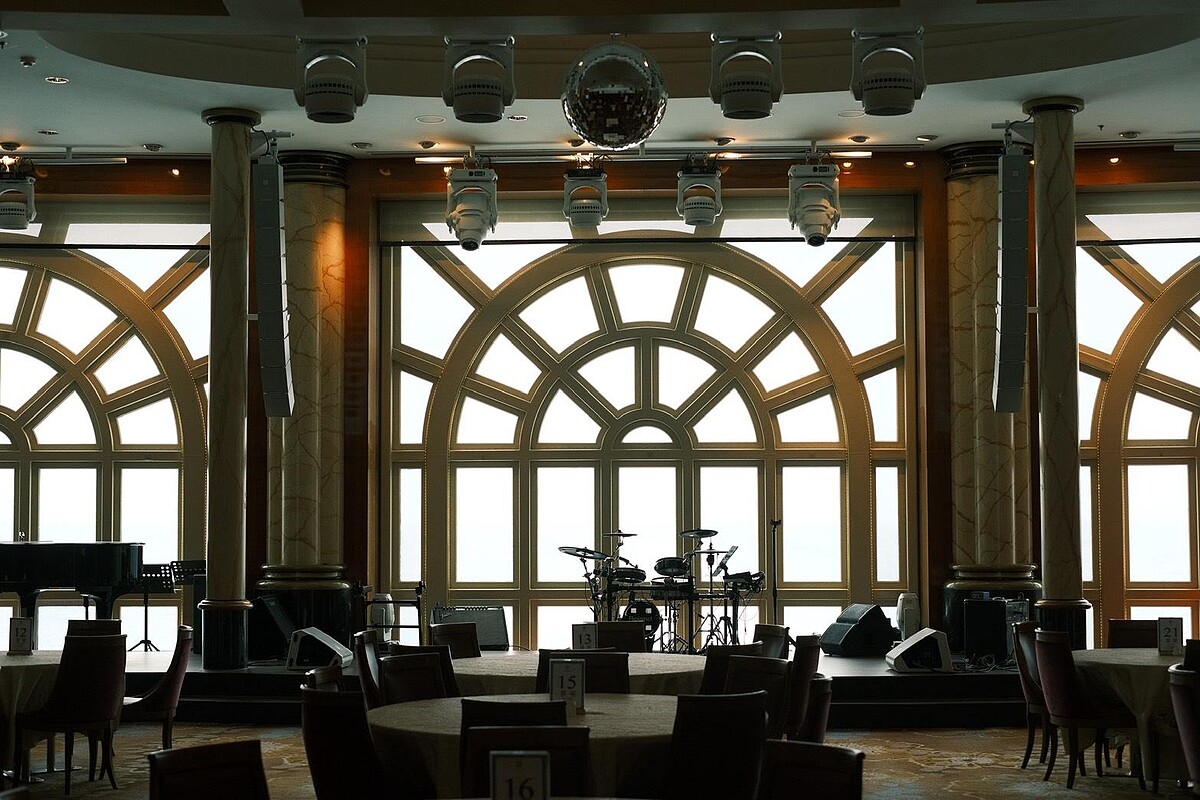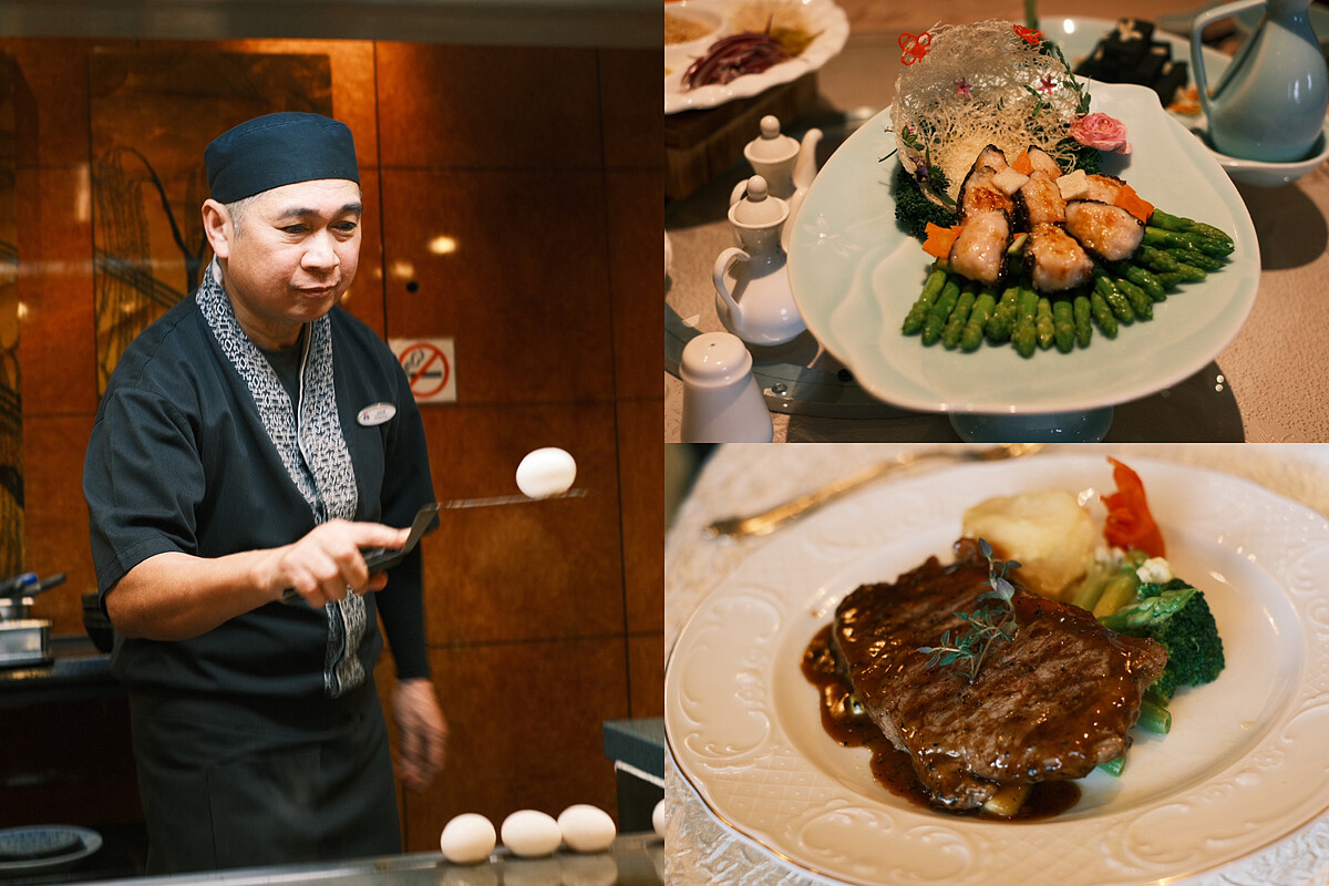 「探索星號」定位為全齡休閒型郵輪,船上設有3間免費餐廳與13間特色付費餐廳,涵蓋義式、中式、西式、東南亞等多國料理。免費選項包括百味軒(西式)、星夢餐廳(中式)與麗都自助餐廳(中西混合),在飲食上已具備一定豐富度。付費餐廳中最具話題的選項像是海馬日本料理與鐵板燒僅設18席,小編強力建議建議提前預約,鐵板燒由專業主廚現場演出與製作,從料理節奏到餐桌演繹皆具水準;另一家「星宴」則以牛排與海鮮為主,環境細緻,適合喜歡西式套餐和小酌體驗的饕客;中餐廳「絲路花舞」則主打片皮鴨、川粵台等多元風味,備有包廂與圓桌,適合家族聚餐或團體用餐。