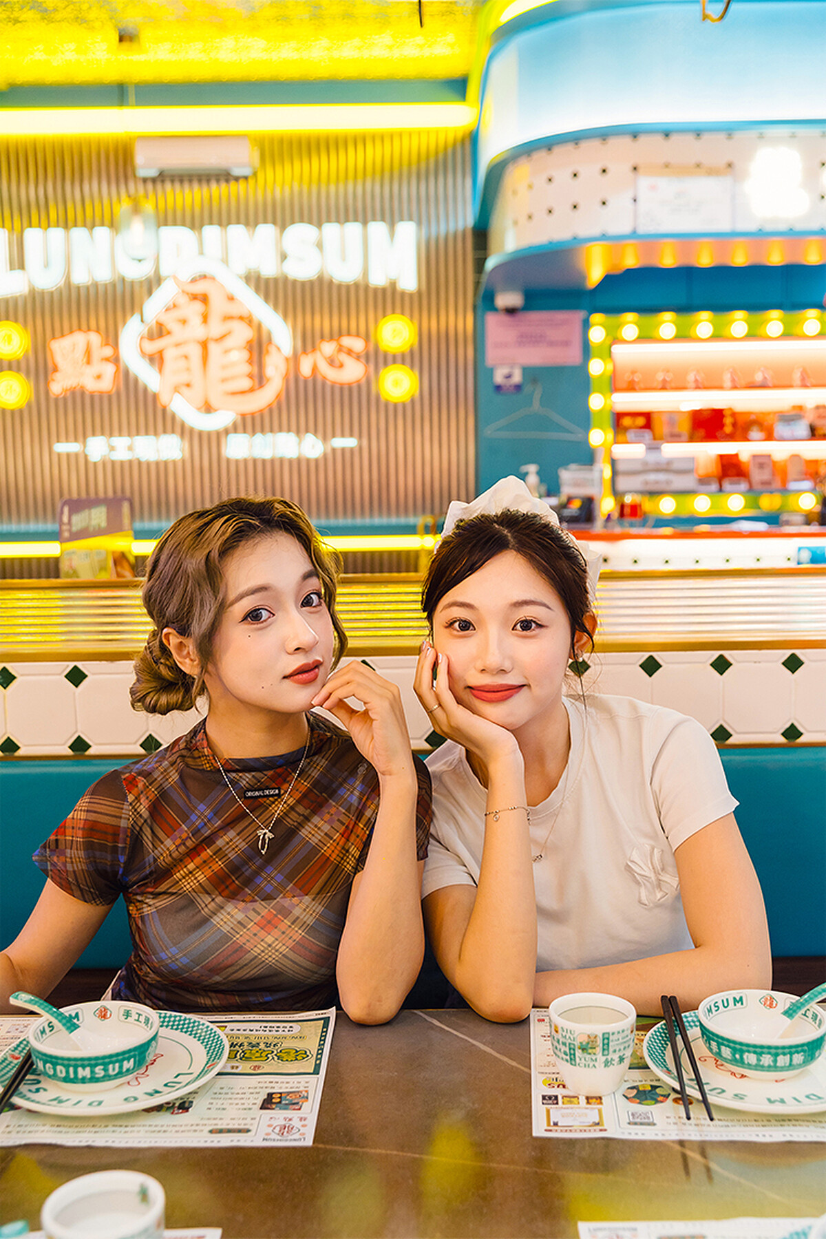 既可以享用到充滿香港風味的港式點心,又可以保持舒適距離給自己一個放鬆用餐環境的「龍點心」,完全太懂I人對用餐的需求,店內空間有著香港特色的霓虹復古街景感,加上運用創意巧思將每樣茶點以精緻小巧的藝術化擺盤呈現,超好吃加上超上鏡好拍的顏值,讓顗妃與紫晴一進到店中就兩眼直冒愛心。